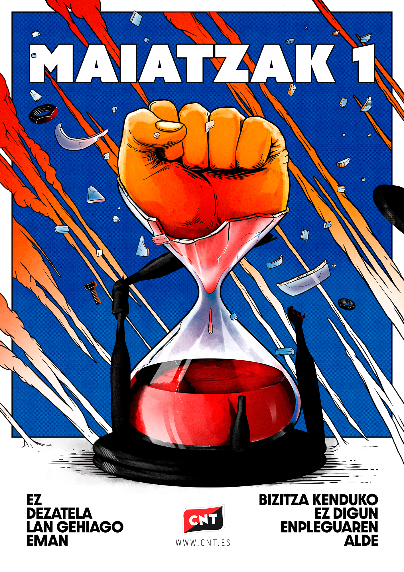 No olvidamos que fuimos nosotras, la CNT, la que arrancó la jornada de ocho horas al sistema. Y seremos nosotras quienes acabemos con el yugo del trabajo que nos roba la existencia. No queremos reformas tibias ni migajas: queremos todo.