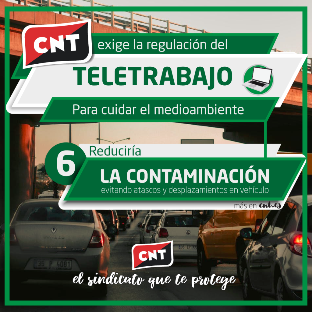 El sindicato considera que la implementación del teletrabajo es imprescindible y que las circunstancias actuales son las más propicias para iniciar las reformas legislativas que sean necesarias. En una situación de emergencia climática global, que podría ser empeorada por un esperado aumento de la utilización del vehículo privado en los desplazamientos para evitar los contagios, el trabajo a distancia es la única medida que puede garantizar una reducción drástica de la contaminación en las ciudades y hacer el trabajo más eficiente. La reducción de horas de desplazamientos innecesarios y la permanencia en el domicilio, fomentan y protegen la conciliación familiar.