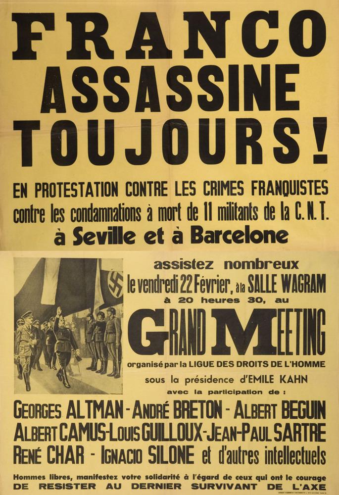 Durante los cincuenta, Camus se posiciona abiertamente a favor de los exiliados libertarios españoles. Pero además, comienza a colaborar en distintas publicaciones anarquistas. Para muestra un botón, colabora con los diarios libertarios franceses: Temoins, Le Monde libertaire (luego Le libertaire), La revolution próletarienne, Defense de l’homme,liberté; y también con los periódicos anarquistas Solidaridad Obrera(Estado Español), Volontá (Italia), Arbetaren y Die Freie Gessellchaft (Alemania), Reconstruir (Argentina), S.A.C.(Suecia) y Babel (Uruguay).