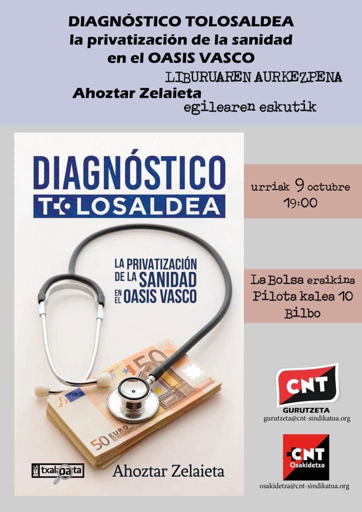 En un contexto de desmantelamiento de Osakidetza, este trabajo de investigación de Ahoztar Zelaieta da a conocer la historia de la clínica Asunción de Tolosa, una muestra de cómo ha influido la concertación de servicios en la crisis del sistema público de salud de la CAV. La Consejería de Salud del Gobierno Vasco ha inyectado grandes cantidades de dinero público en esta clínica privada, centro de salud de referencia para toda la zona, en un negocio salpicado por la corrupción y las puertas giratorias. El libro cuenta con el prólogo de la plataforma Tolosaldea Osasun Publikoaren Alde, TOPA, que forma parte de la marea blanca que están fraguando diversas plataformas para protestar por el colapso de Osakidetza