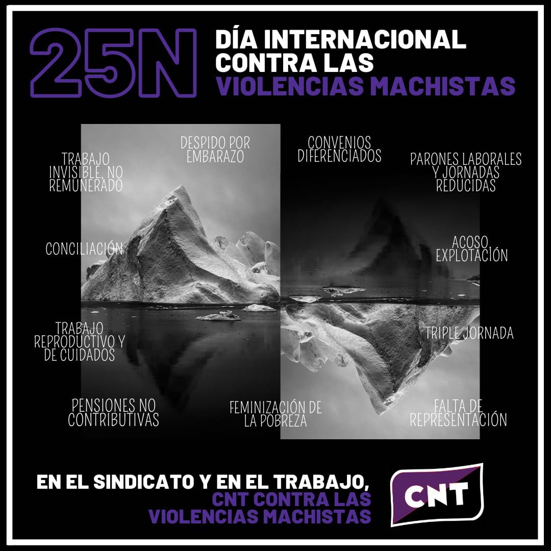 Horregatik, azaroaren 25ean edo urteko edozein egunetan: sindikatuan eta lanean,  CNT indarkeria matxisten aurka, CNT zurekin.
