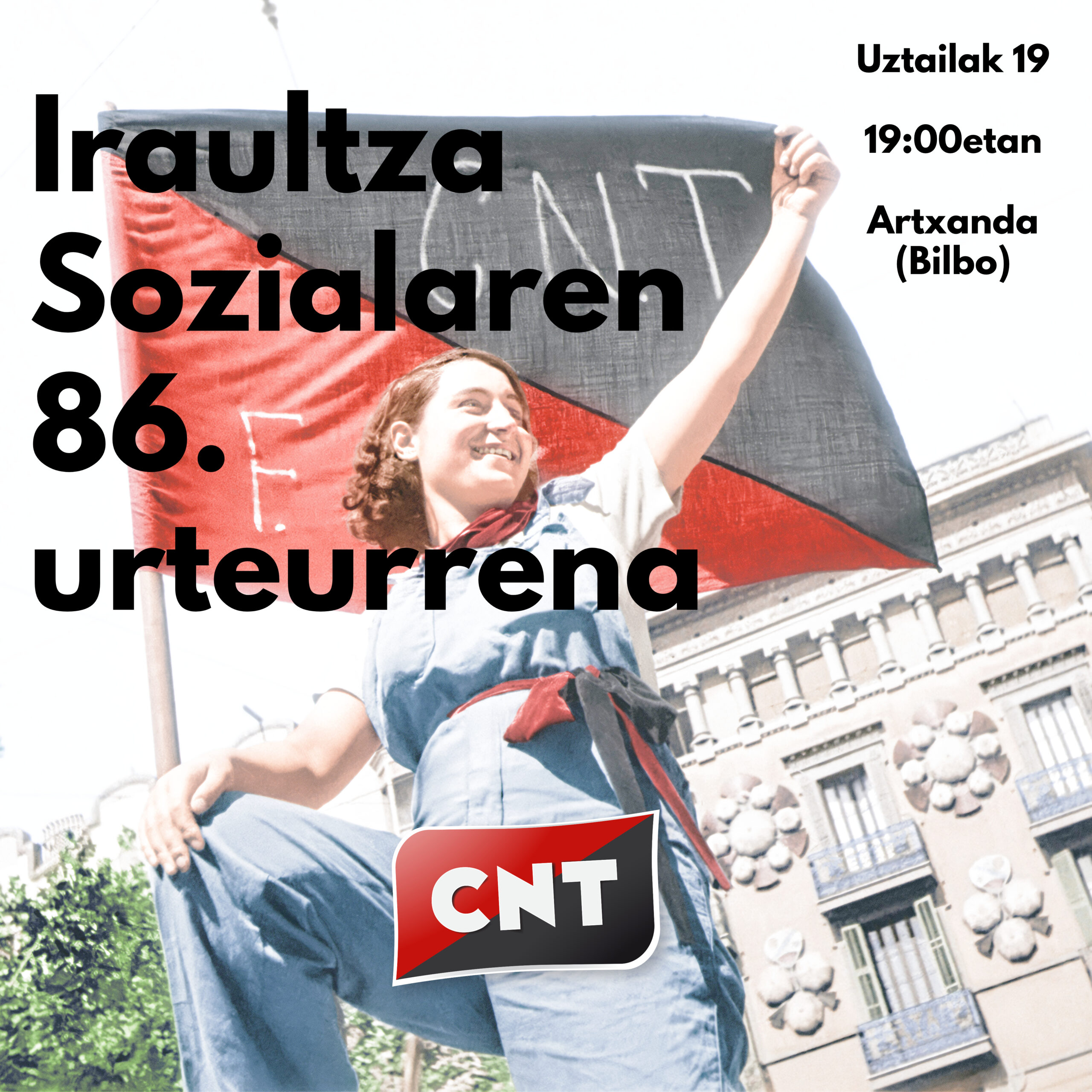 Urtero bezala, CNTk omenaldia egingo die, faxismoa gelditzeaz gain, “Iraultza Soziala errealitate bihurtu zuten emakume eta gizonei”. Uztailaren 19an izango da, 19:00etan, Artxandan (Bilbo).