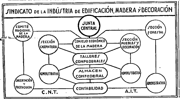 Ezaugarri orokorrak jabetza pribatuaren abolizioa eta komunen ezarpena ziren, gizarte berriaren funtsezko elementu gisa. Industria mailan, produkzio-zentro bakoitzak kontseilu tekniko-administratibo bat izango luke, enpresako plantillak asanbladan izendatua. Beste zentro batzuekin koordinatuko ziren industria-federazioen bidez 1936an oso gutxi garatuta zeuden . Deskribapenean ez dute argi uzten sindikatuek une horretatik aurrera izango duten rola, eta komunismo libertarioa lortu denez, desegin egingo liratekeela ulertzen da.