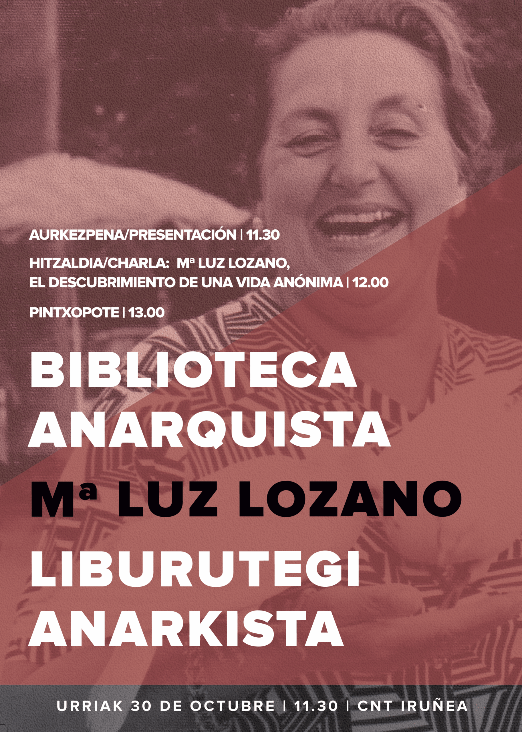 Mari Luz Lozano Zangotzan jaio zen 1913. urtean. Borrokalari antifaxista nekaezina izan zen, eta bertatik bertara sufritu zuen errepresioa 1936ko altxamenduaren ondoren. Ekitaldian, senide eta kide zenetistek bere biografia zabal bezain ezezagun eta zirraragarria azalduko dute. Ekitaldia agertu nahi duen orori irekia da eta CNTren egoitzan izanen da, Iruñeko Eslava kaleko 11.ean, 11:30ean.