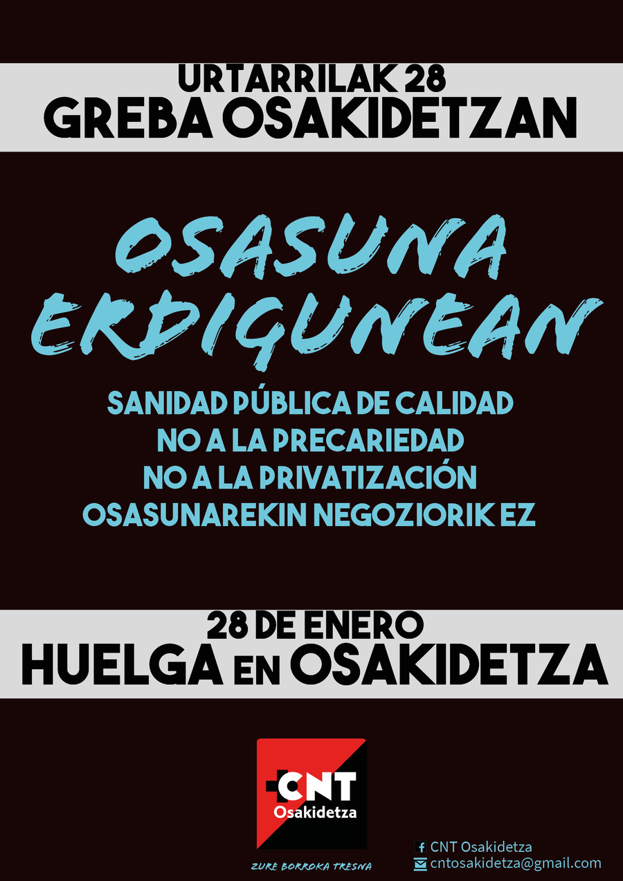 Urtarrilaren 28an greba deialdia dago Osakidetzan, hainbat sindikatuk deituta. CNTren sail sindikalak deialdi honekin bat egiten du. Hurrengo lerroetan egindako hausnarketa helarazten da.